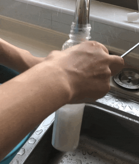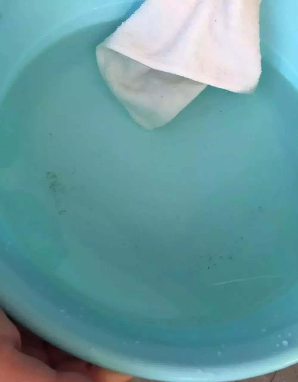 日村水管清洗員:這是剛清洗出的水,還是有輕微污染的。