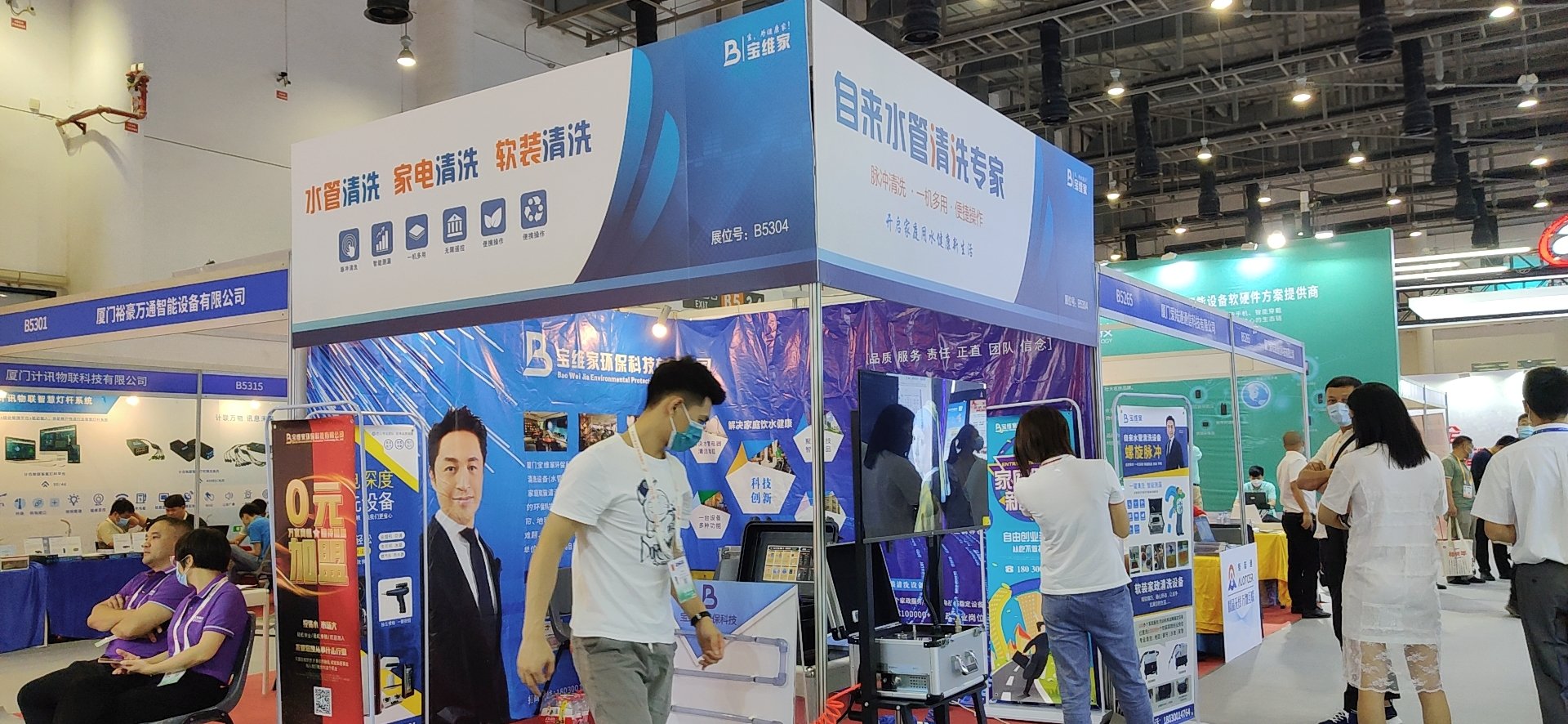 廈門寶維家也受邀參加此次的展會,展會現(xiàn)場人潮涌動,寶維家的展位前更是迎來了大量的客商咨詢。此次展出的產(chǎn)品有VJ-X3水管清洗設備、VJ-C1綜合清洗機、VJ-C2綜合清洗機等。