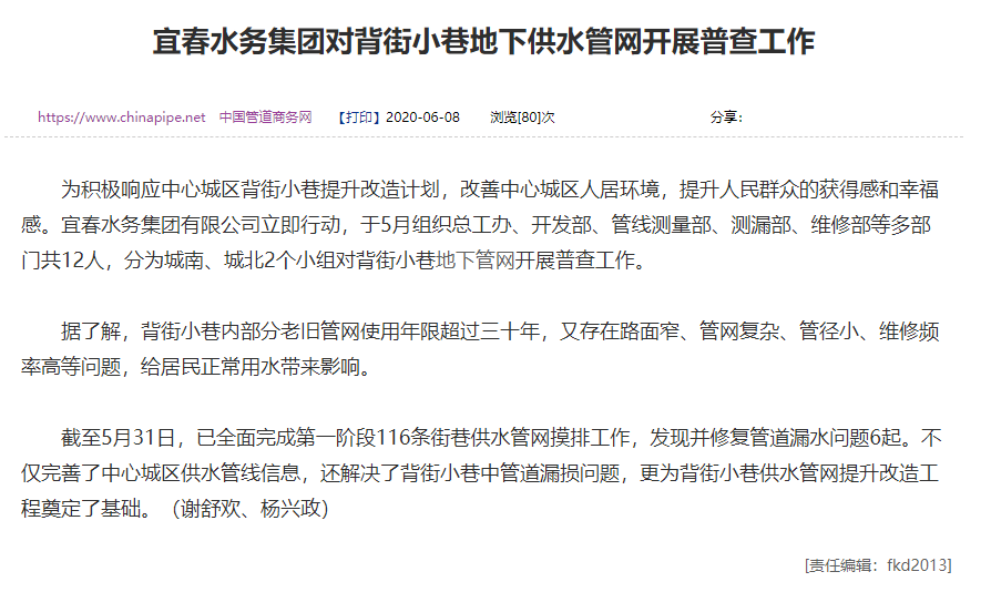 【宜春水務(wù)集團(tuán)對(duì)供水管網(wǎng)展開普查工作】