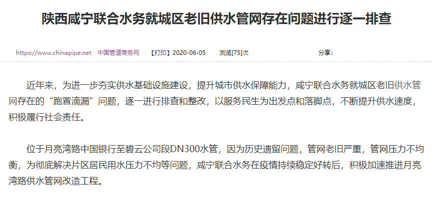 【陜西咸寧水務(wù)局對(duì)供水管網(wǎng)進(jìn)行排查】