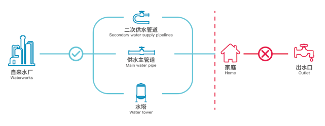 我們的飲用水,從自來水廠出廠后要經(jīng)過復(fù)雜的地下管網(wǎng)、蓄水池、二次供水設(shè)施以及家庭管道等多個環(huán)節(jié)才能被使用。在這個運(yùn)輸?shù)倪^程中,由于管道老化銹蝕、管網(wǎng)破壞滲漏、管道雜菌滋生等原因,極有可能導(dǎo)致二次污染甚至是三次污染。所以嚴(yán)格來講,我們家中水龍頭流出的水,并不是完全安全的。