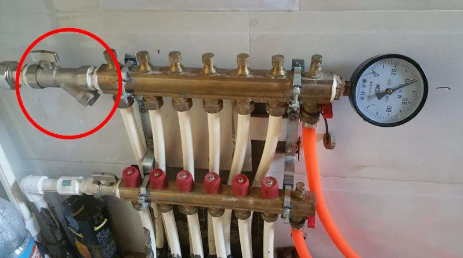 不同地區(qū)的暖氣水水質(zhì)不同,暖氣水水溫不同,暖氣管道的老化程度不同,暖氣水壓不同,管道堵塞的速度自然也不同。一般來說,更建議每年做一次簡單的濾網(wǎng)清理:在地暖分水器的旁邊,或者樓道的管井里,可以看到一個(gè)斜向下的金屬接頭,如下圖▼