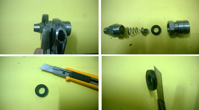 2.找一個新的O型圈(密封圈)(鋼絲軟管上的也有)用刀子均勻的切一半下來。